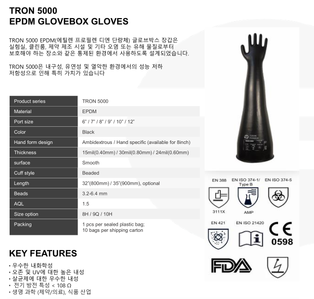 CSM Hypalon, EPDM 등 다양한 종류의 글러브