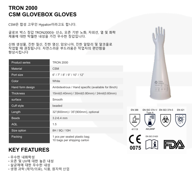 CSM Hypalon, EPDM 등 다양한 종류의 글러브